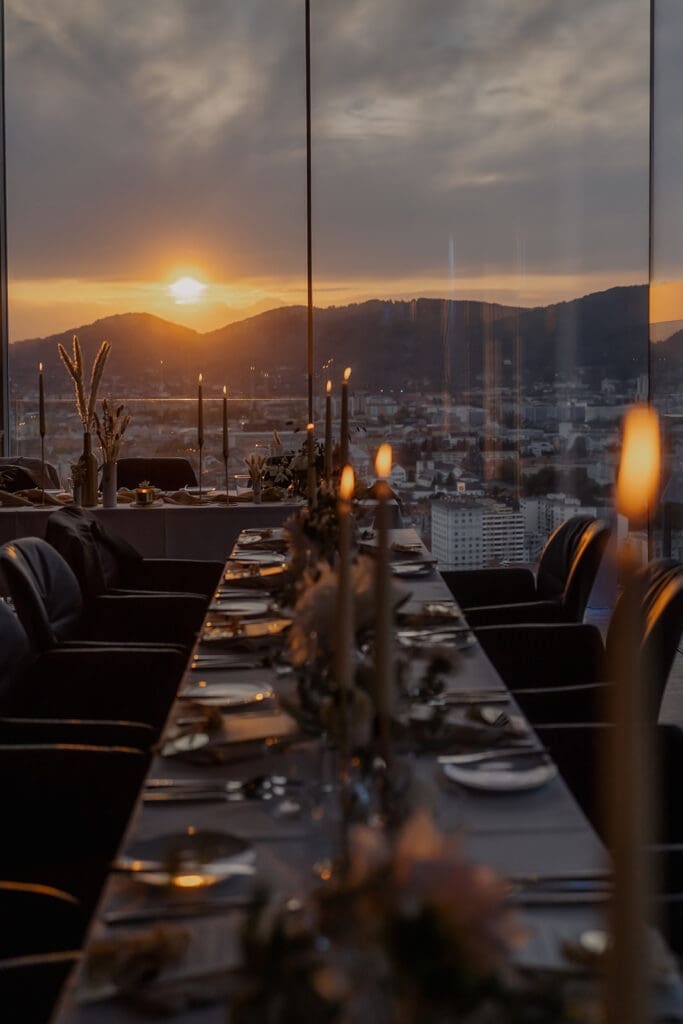 Heiraten über den Dächern von Graz – wer kann das schon von sich behaupten? Der Schlossberg bietet einen atemberaubenden Ausblick über die ganze Stadt und schafft damit eine ganz besondere, fast schon magische Atmosphäre für euren Hochzeitstag. Das Ambiente ist stilvoll und einzigartig, dazu kommen exzellenter Service und eine Küche auf höchstem Niveau. Besonders geeignet ist diese Location für kleinere Gesellschaften – eher ohne Kinder – die eine moderne, besondere Hochzeit mit Weitblick feiern möchten. Eine Location, die definitiv in Erinnerung bleibt. 🤍