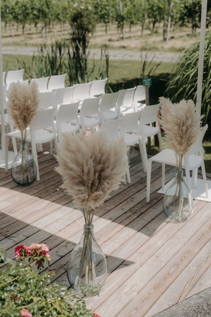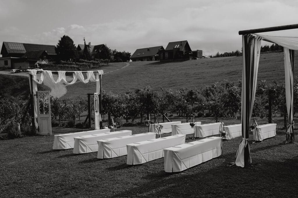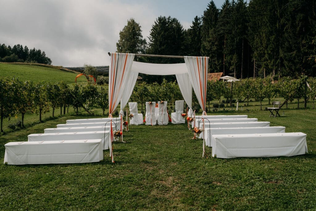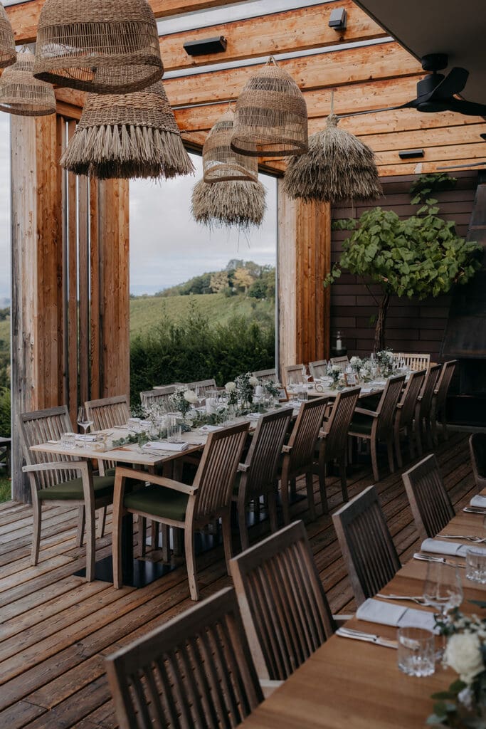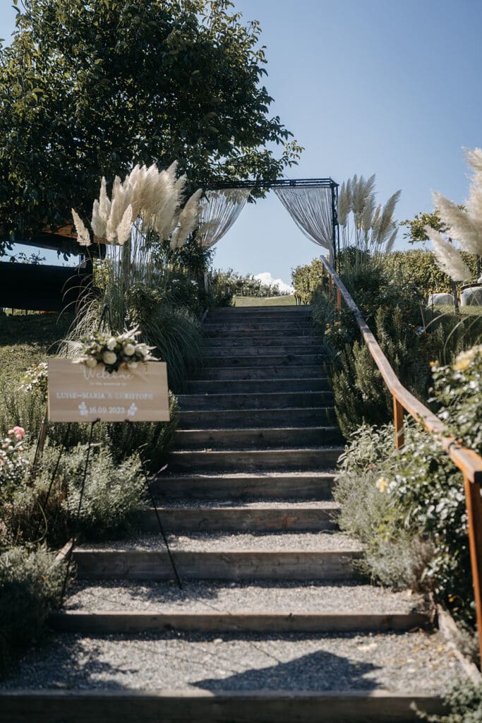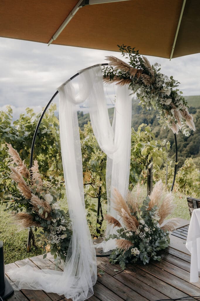 Hier gilt ganz klar: mehr ist mehr. Kaum eine Location bietet so viel Raum für kreative Ideen und Deko-Inspiration wie das Weingut Holler. Wer es liebt, Trends auszuleben und Details zu zelebrieren ist hier genau richtig. Mittlerweile gibt es gleich mehrere Locations am Weingut – meine persönlichen Favoriten sind der Weinberg und die Scheune. Der Weinberg überzeugt mit Weitblick und Atmosphäre, die Scheune ist perfekt für alle, die es etwas rustikaler mögen. Dazu kommt eine durchdachte Schlechtwettervariante. Die Sonne darf man hier allerdings nicht scheuen. 🤍