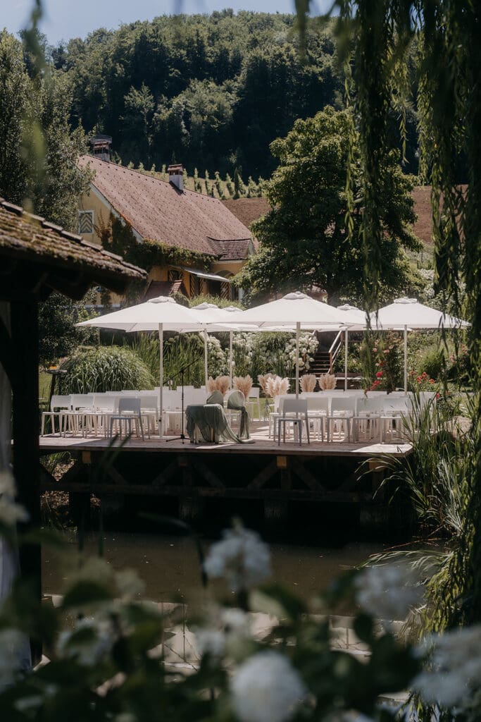 Ein kleines, verstecktes Paradies – genau so fühlt sich das Jöbstl Stammhaus an. In ruhiger Alleinlage gelegen, bietet diese Location einfach alles, was man sich für einen Hochzeitstag wünscht: einen wunderschönen, von Weinreben umgebenen Trauplatz, eine stimmige Atmosphäre zum Feiern sowie Möglichkeiten für Getting Ready und Übernachtung direkt vor Ort. Es ist ein unglaublich romantischer Ort mit einer leicht rustikalen, aber gleichzeitig sehr heimeligen Stimmung, in der man sich sofort wohlfühlt. Mit dem Teich, viel Platz – auch für Kinder – und dieser herzlichen Gastfreundschaft entsteht hier ein ganz besonderes Gefühl von Ankommen. Ein Ort, der Ruhe ausstrahlt und gleichzeitig alles mitbringt, was euren Tag unvergesslich macht. 🤍