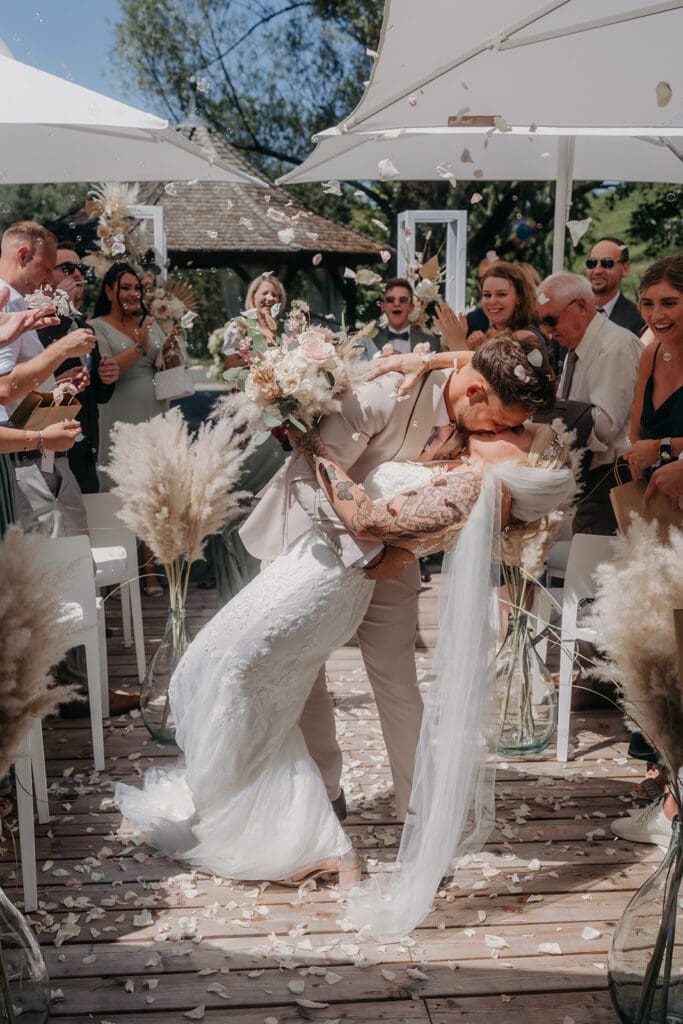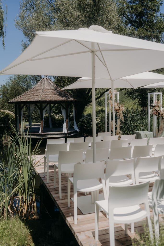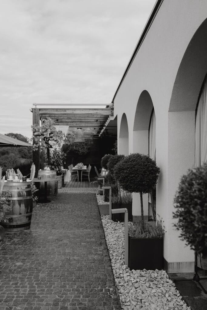 Kein klassisches Weingut, sondern eine unglaublich charmante Location mit ganz besonderem Flair. Mit dem Teich, dem wunderschönen Platz für eure Trauung und der ruhigen Umgebung entsteht hier eine Atmosphäre, in der man sofort ankommen möchte. Obwohl es ein Hotel ist, fühlt es sich überhaupt nicht danach an – eher wie ein Ort, an dem man gerne länger bleibt. Eure Gäste sind bestens untergebracht, ihr selbst rundum versorgt. Und Isa? Die kümmert sich wie eine flotte Biene um alles und sorgt dafür, dass einfach alles reibungslos läuft. Auch kulinarisch bleiben hier wirklich keine Wünsche offen. 🤍