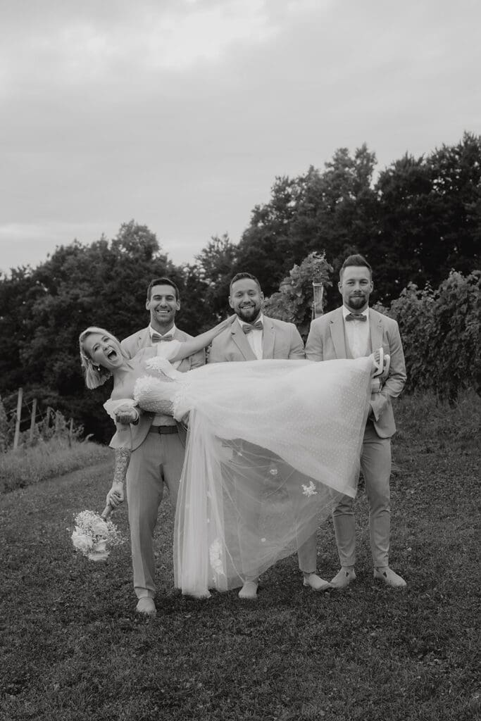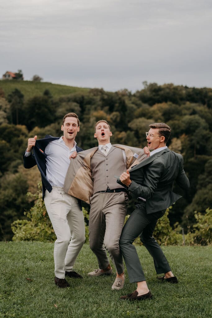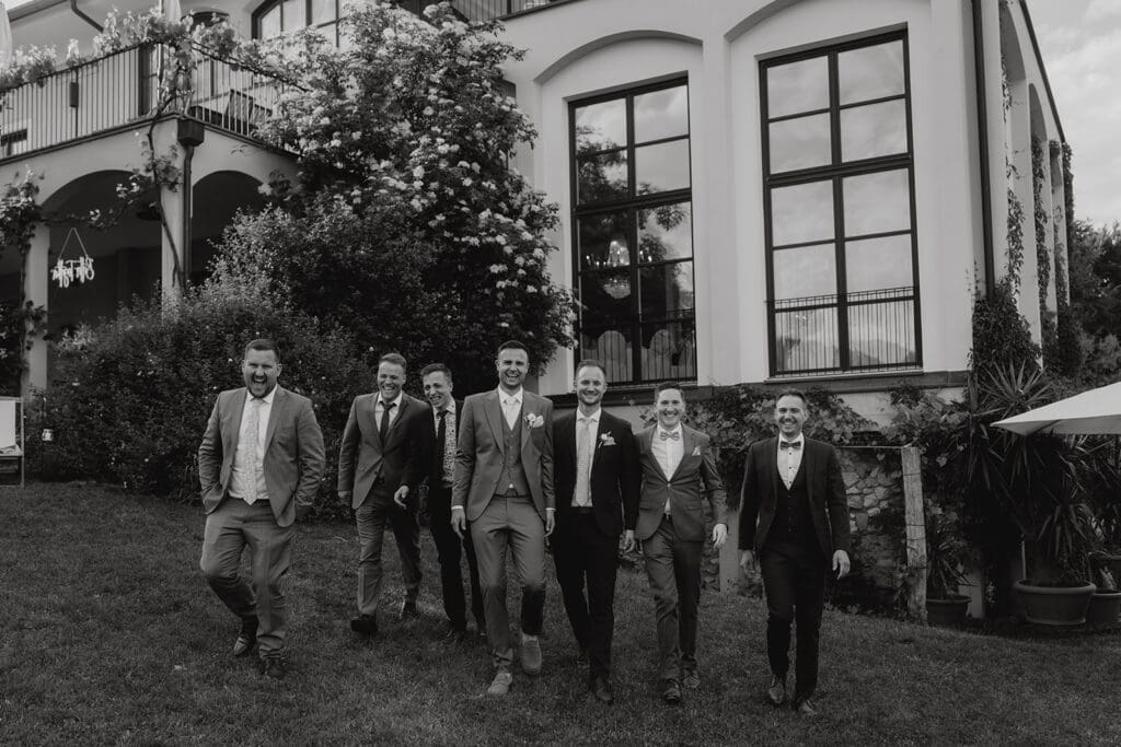 Damit die Gruppenfotos möglichst stressfrei über die Bühne gehen, ist es wichtig, sich schon vorab über die einzelnen Gruppenkonstellationen Gedanken zu machen. Meistens sind die Bilder schnell im Kasten, wenn jeder weiß, wo und wann er dran ist. Am besten bestimmt ihr jemanden aus dem Freundeskreis oder eure Trauzeugen dazu, die Leute der Reihe nach zu holen, sodass ihr nicht immer wegrennen müsst. Ansonsten vergeuden wir viel Zeit damit, Leute zu suchen, die vielleicht gerade an der Bar, am WC oder sonst wo sind. By the way: Auf jeder Hochzeit gibt es diese eine Person, die man immer sucht 🙂 Stellt unbedingt eine Liste zusammen, mit wem ihr gerne ein Foto haben möchtet und übergebt diese Jenem, der dazu beauftragt ist, die Gruppenfotos zu organisieren. Haltet die einzelnen Konstellationen so klein wie möglich. Hier ein paar Beispiele für mögliche Konstellationen:
