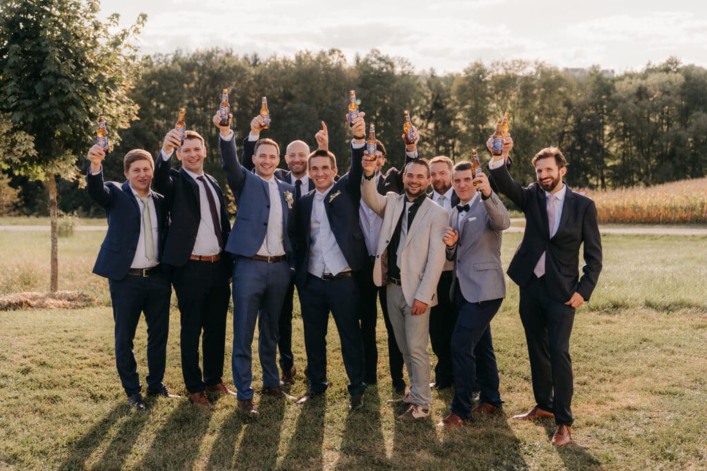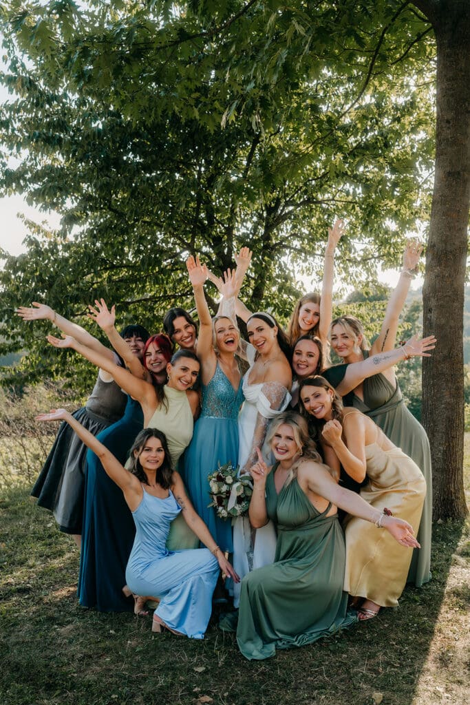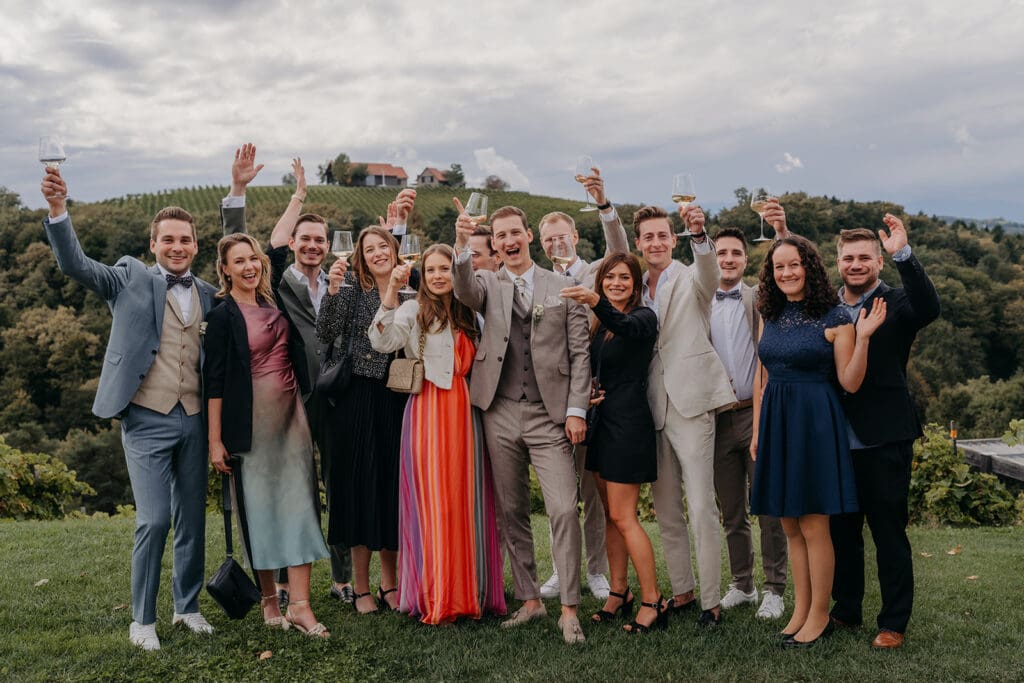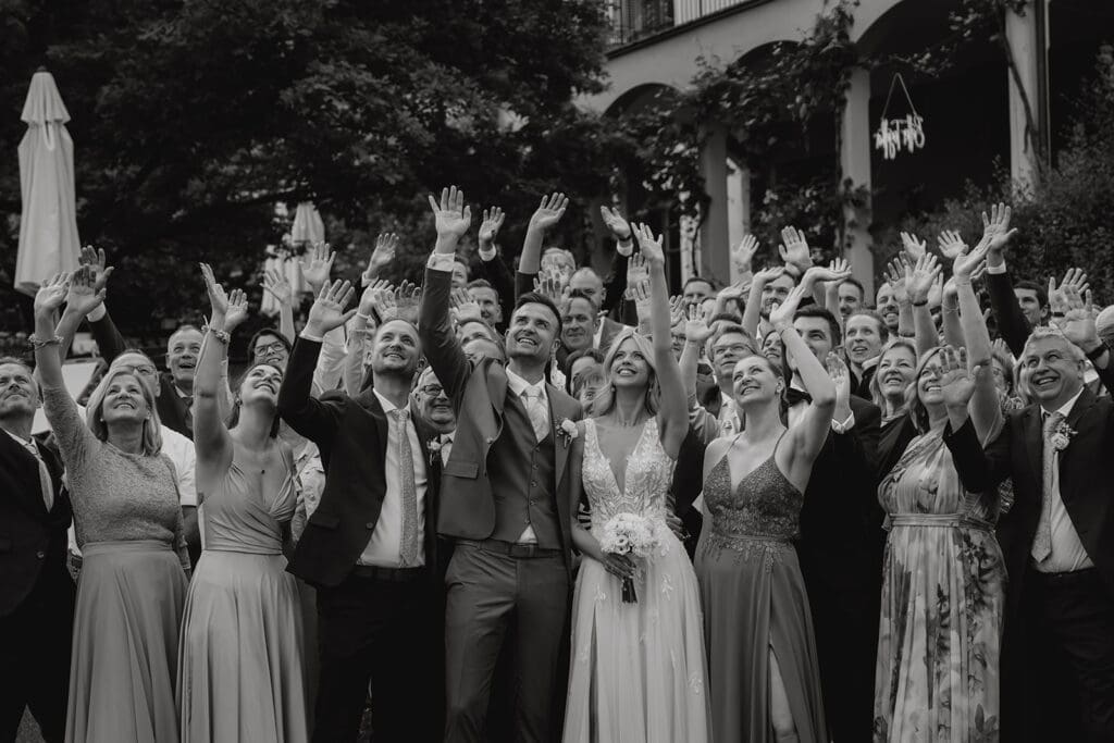 Gruppenfotos sind für mich ein unverzichtbarer Teil eures Hochzeitstages. Auch wenn sie oft nach Stress oder einer langen „Pflichtaufgabe“ klingen, die man eigentlich lieber überspringen würde, bin ich überzeugt: Lasst sie nicht weg. Jahre später sind es genau diese Bilder mit Familie und Herzensmenschen, die einen unschätzbaren Wert bekommen. Was ich allerdings immer empfehle: Haltet es bewusst klein. Ihr müsst nicht mit jedem einzelnen Gast ein Foto machen – das würde den Rahmen sprengen und euch wertvolle Zeit nehmen. Viel wichtiger ist, dass ihr euren Tag genießen und Zeit mit euren Liebsten verbringen könnt. Gruppenfotos dürfen leicht sein. Sie dürfen Spaß machen. Und sie dürfen genauso geplant werden wie jeder andere Teil eures Tages. Mit einer guten Vorbereitung, einer klaren Liste und etwas Struktur wird daraus kein Stressmoment – sondern ein fröhlicher, lebendiger Teil eurer Hochzeit. 🤍